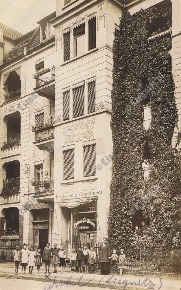 Prezentowana karta pocztowa pochodzi z 1931 r. Przedstawiony został na niej budynek, który ciężko nam zidentyfikować. Na parterze z pewnością znajduje się jeden ze sklepów legnickiej mleczarni (Central Molkerei Liegnitz), która swoją siedzibę miał przy obecnej ul. Zielonej. Adres Grünstraße 3 znajduje się na tyle ciężarówki. Jednak nie wydaje nam się, że jest to ulica Zielona.